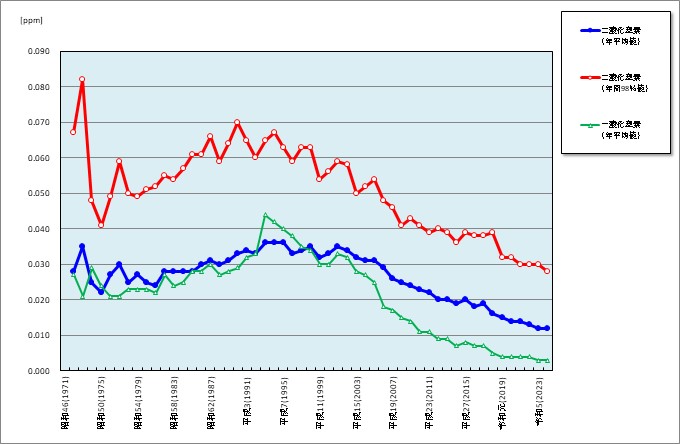 | 年度 | 二酸化窒素 | 一酸化窒素 | 窒素酸化物 |